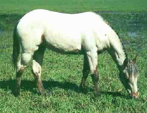 Roan: White over body and hips/star and stripe/LF-lightning marks/LH-partial coronet/RF-lightning marks/RH-lightning marks/ few bay spots