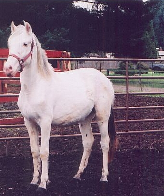 Roan: White over entire body/no face markings/no leg markings//few bay spots