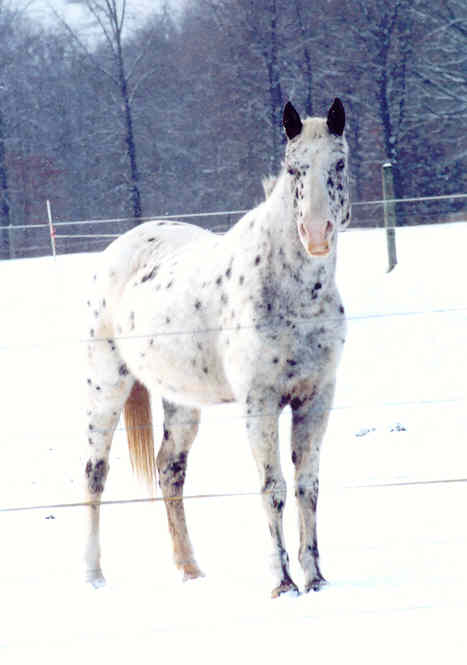 white with spots over body & hips/blaze/no leg markings