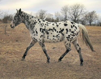 White: Spots over entire body/no face markings/LF-no leg markings/LH-no leg markings/RF-no leg markings/RH-lightning marks. Bay spots and varnish marks