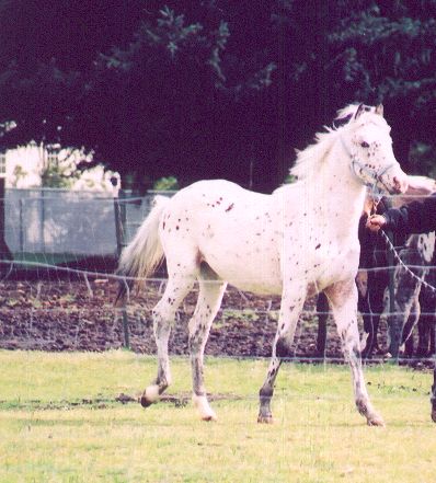 Roan: White with spots over entire body/star, stripe and snip/LH-partial ankle