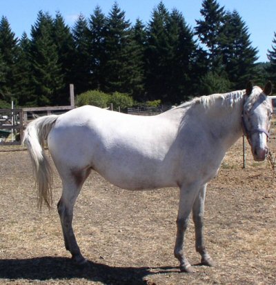 white with spots over back & hips/star, stripe & snip/no leg markings