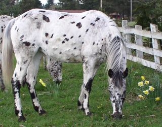 Roan: White with spots over entire body/star/LF-lightning marks/LH-lightning marks/RF-lightning marks/RH-lightning marks