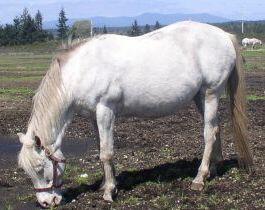 white with spots over hips/blaze/snip-lower lip/LF-no leg markings/LH-partial ankle/RF-no leg markings/RH-no leg markings